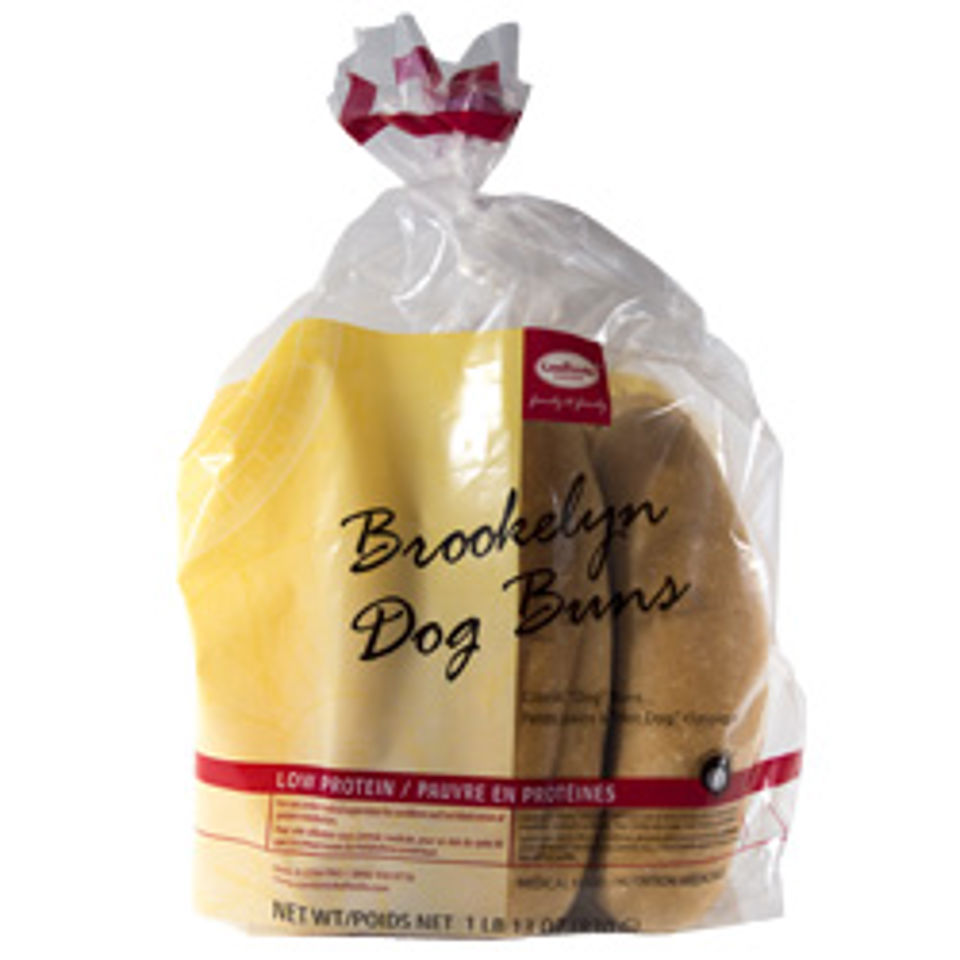 Description: Each package contains 6 low protein long "dog-style" buns. Each bun weighs ~89 g.