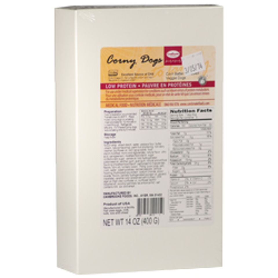 Description: Each package contains 8 Corny Dogs. The taste of these 50 g Corny Dogs will take you back to the state fair! They have a hot-dog seasoned veggie sausage middle and are surrounded by a crispy corny batter wrap. Just bake and serve. Contains 32 mg of DHA Omega 3's per serving.