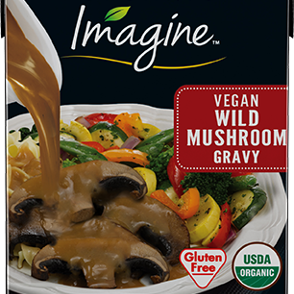 INGREDIENTS: Filtered Water, Organic Corn Starch, Contains Less Than 2% of: Organic Mushroom Flavor (Includes Organic Mushrooms, Organic Soy Sauce [Organic Soybeans, Salt], Organic Mushroom Powder, Organic Canola Oil, Organic Molasses, Yeast Extract, Organic Potato Flour, Organic Flavor, Organic Onion Powder, Flavor, Organic Yeast Extract), Sea Salt, Organic Vegetable Flavor (Includes Organic Carrots, Organic Onions, Organic Celery, Sea Salt), Organic Evaporated Cane Syrup, Organic Garlic Powder, Natural Flavors, Organic Yeast Extract, Xanthan Gum, Organic Carmel Color, Organic Spice. Contains: Soy.