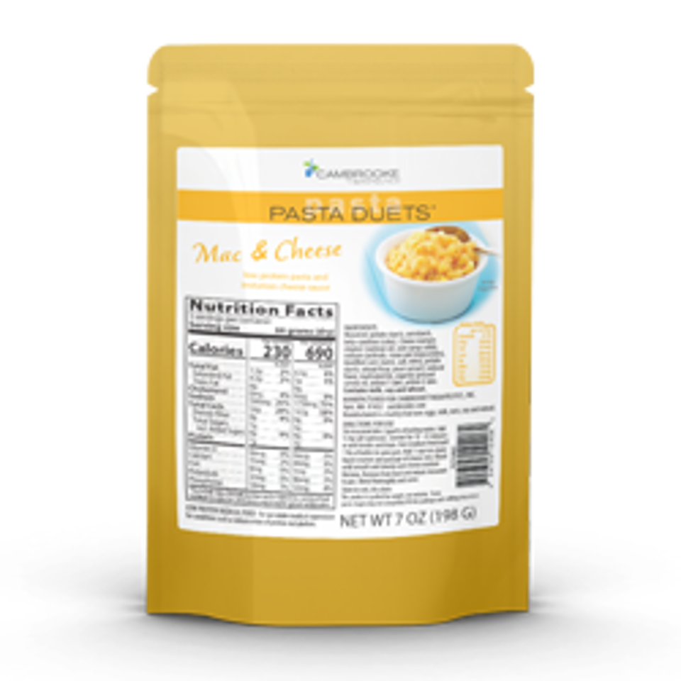 Description: Each three-serving box contains 7 oz of low protein Pasta Solo - Elbows and a dry cheese mix. Add butter or margarine and nondairy creamer to make a quick and easy Cambrooke favorite!