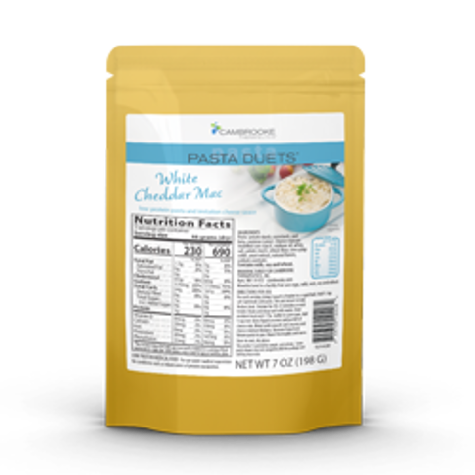 Description: Each three serving box contains 7 oz of low protein Elbow Pasta and a dry white cheese mix. A quick and easy to make a delicious dinner or side dish! Add butter or margarine and nondairy creamer to make a quick and easy Cambrooke favorite!
