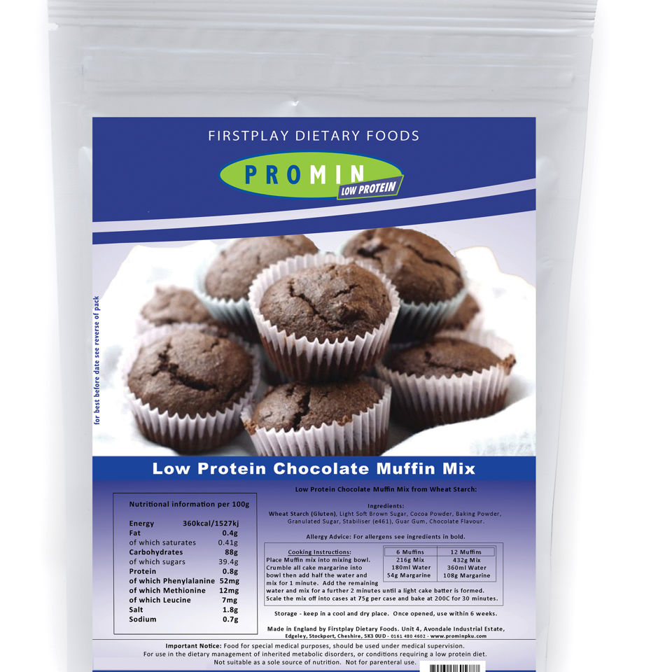 Low protein baking mixture for preparing 12 chocolate muffins, prepared in an instant – super fluffy and light.