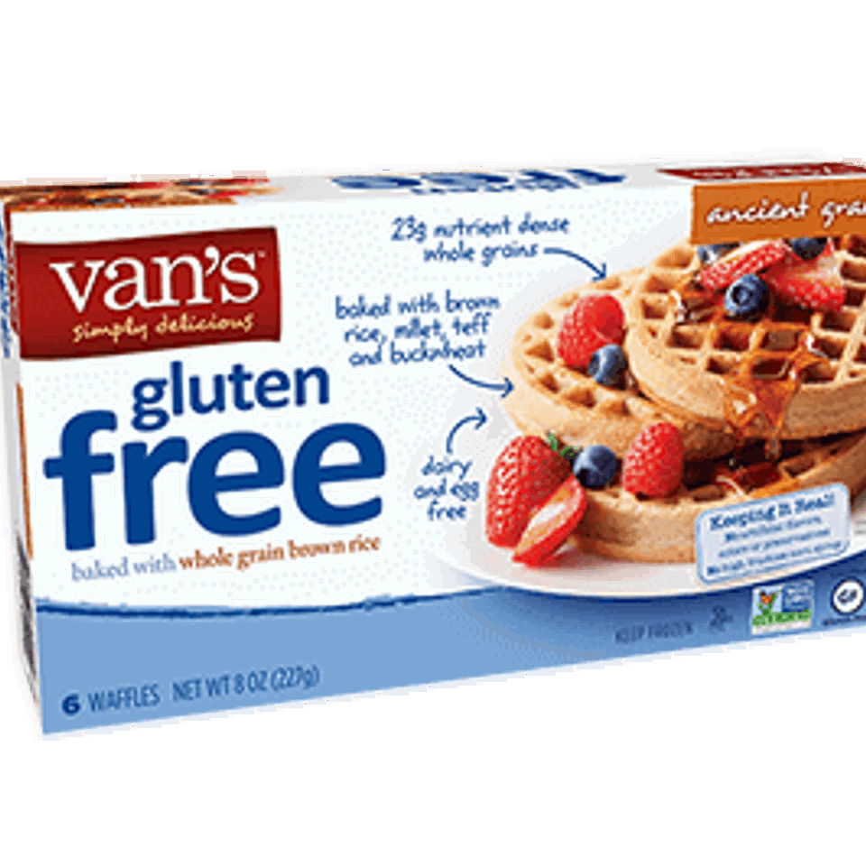 Water, Van’s Foods Gluten Free Mix (Brown Rice Flour, Potato Starch, Rice Flour, Soy Flour), non-GMO Expeller Pressed Canola Oil, Baking Powder (Sodium Acid Pyrophosphate, Baking Soda, Rice Flour, Monocalcium Phosphate), Van’s Natural Fruit Juice Blend (Pineapple, Peach And Pear Juice Concentrates), Sea Salt, Guar Gum, Soy Lecithin. CONTAINS: SOY